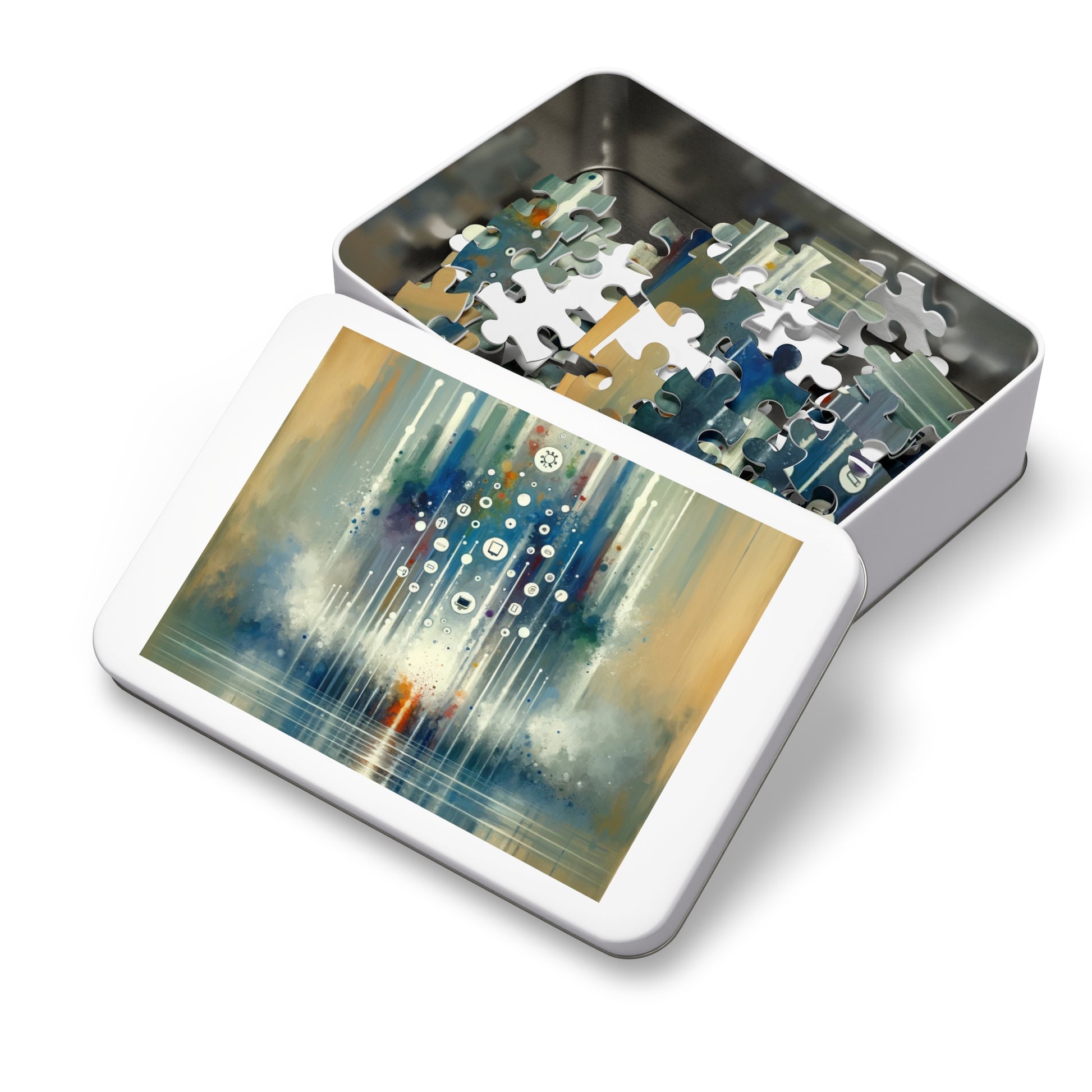 Shipped in gift-ready metal boxes for a show-stopping presentation, our puzzles are ideal for gifting to loved ones or treating yourself to a well-deserved break. So take a step back, breathe, and enjoy the satisfaction of piecing together this beautiful artwork that encourages balance and harmony in a fast-paced, digitally-driven world. Experience the joy of completing our "Tachism Digital Escape" puzzle and embrace the art of mindfulness and reflection.