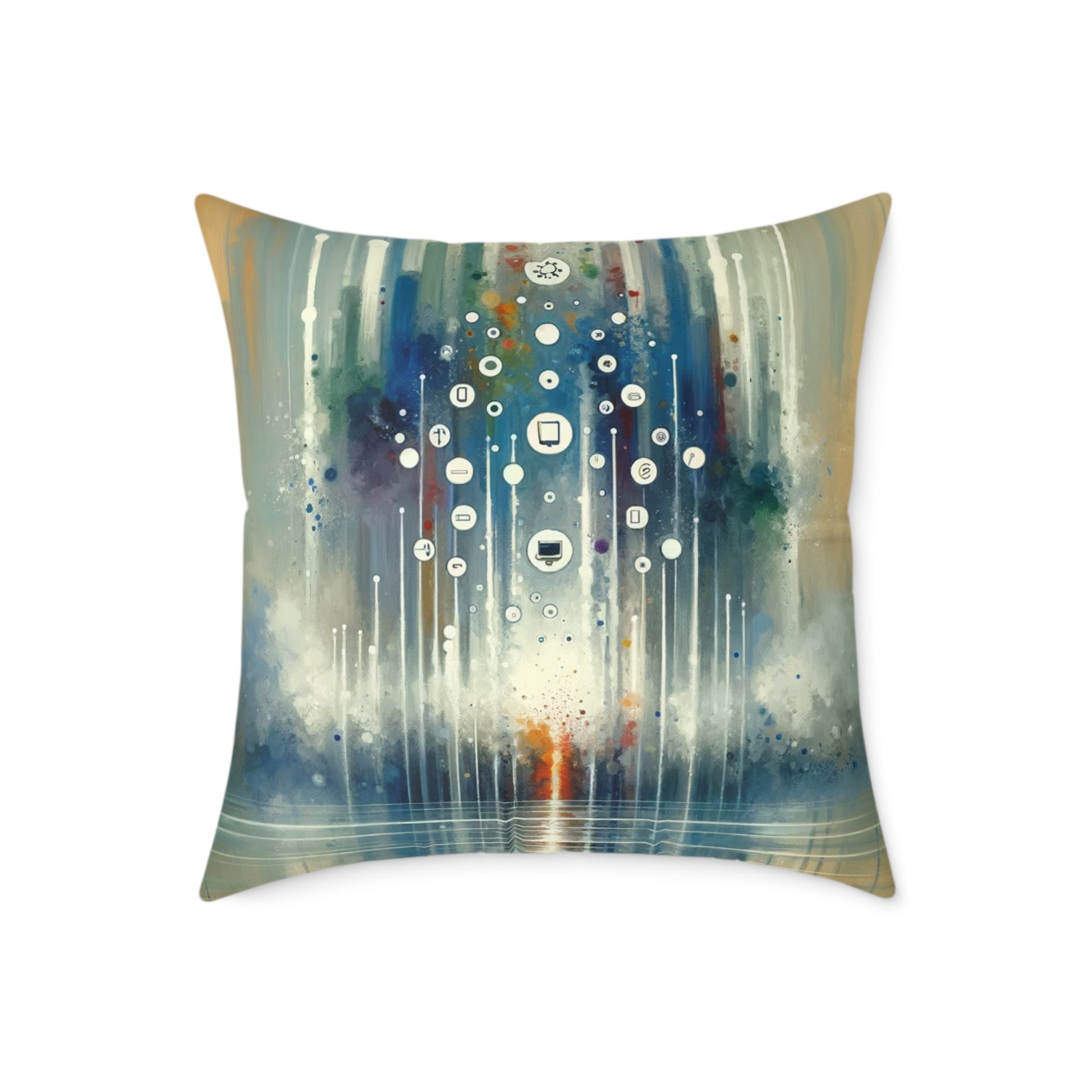 Elevate the atmosphere of any room with our Tachism Digital Escape Spun Polyester Pillow. Designed to inspire moments of reflection and relaxation, this unique piece of home decor encourages viewers to unplug and prioritize self-care in a digital world. The abstract imagery and symbolic elements of the painting serve as a visual reminder to find balance and reconnect with the natural world around us. Featuring a concealed zipper and filled with quality polyester, this pillow is a comfortable and stylish addition to any living space. Let this customized polyester pillow capture the attention of guests and uplift the mood of any home with its double-sided print and available in 5 sizes. Bring a sense of peace and tranquility into your space with our Tachism Digital Escape Pillow, sourced from China to offer a touch of global inspiration to your interior design.