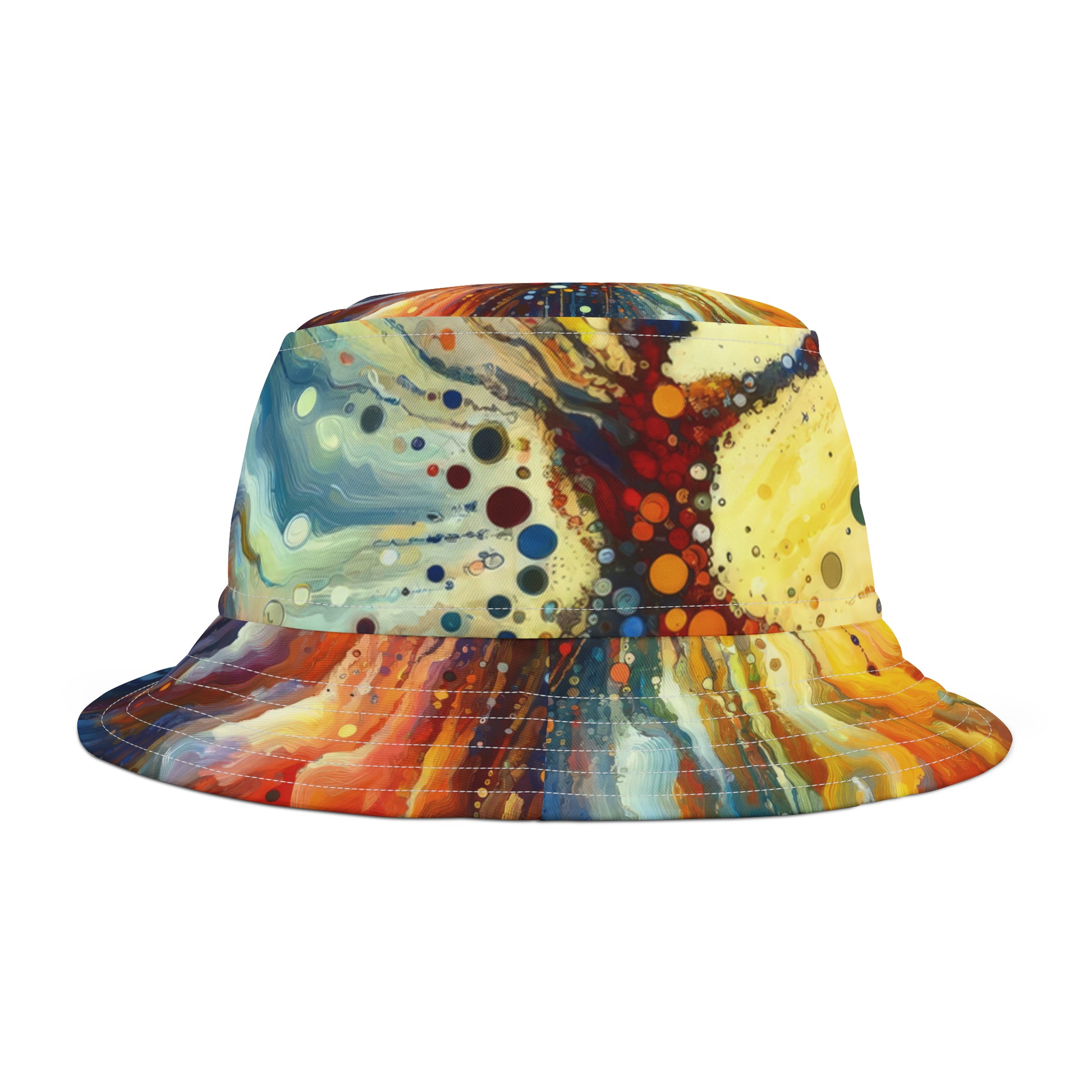 The vibrant colors and intricate patterns of the painting come to life on this bucket hat, creating a truly one-of-a-kind look. The swirling motions and contrasting hues symbolize the ever-evolving journey of growth and self-discovery, making this hat a powerful statement piece for those who strive for personal and collective transformation.