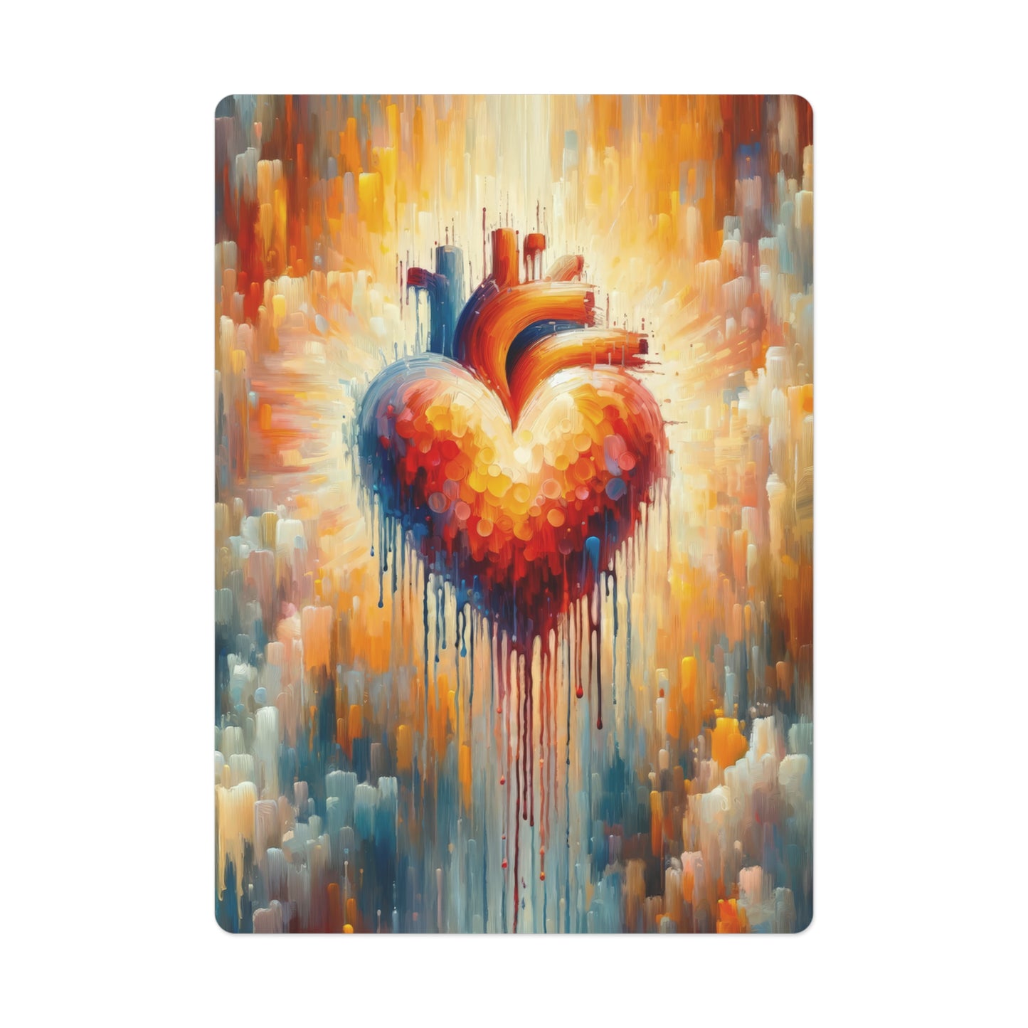 Add a touch of artistic expression to your next poker night with our personalized poker cards featuring the mesmerizing artwork titled "Vital Compassionate Beat." Created in the bold and captivating style of Tachism, this deck of cards will elevate your gaming experience to new heights.
