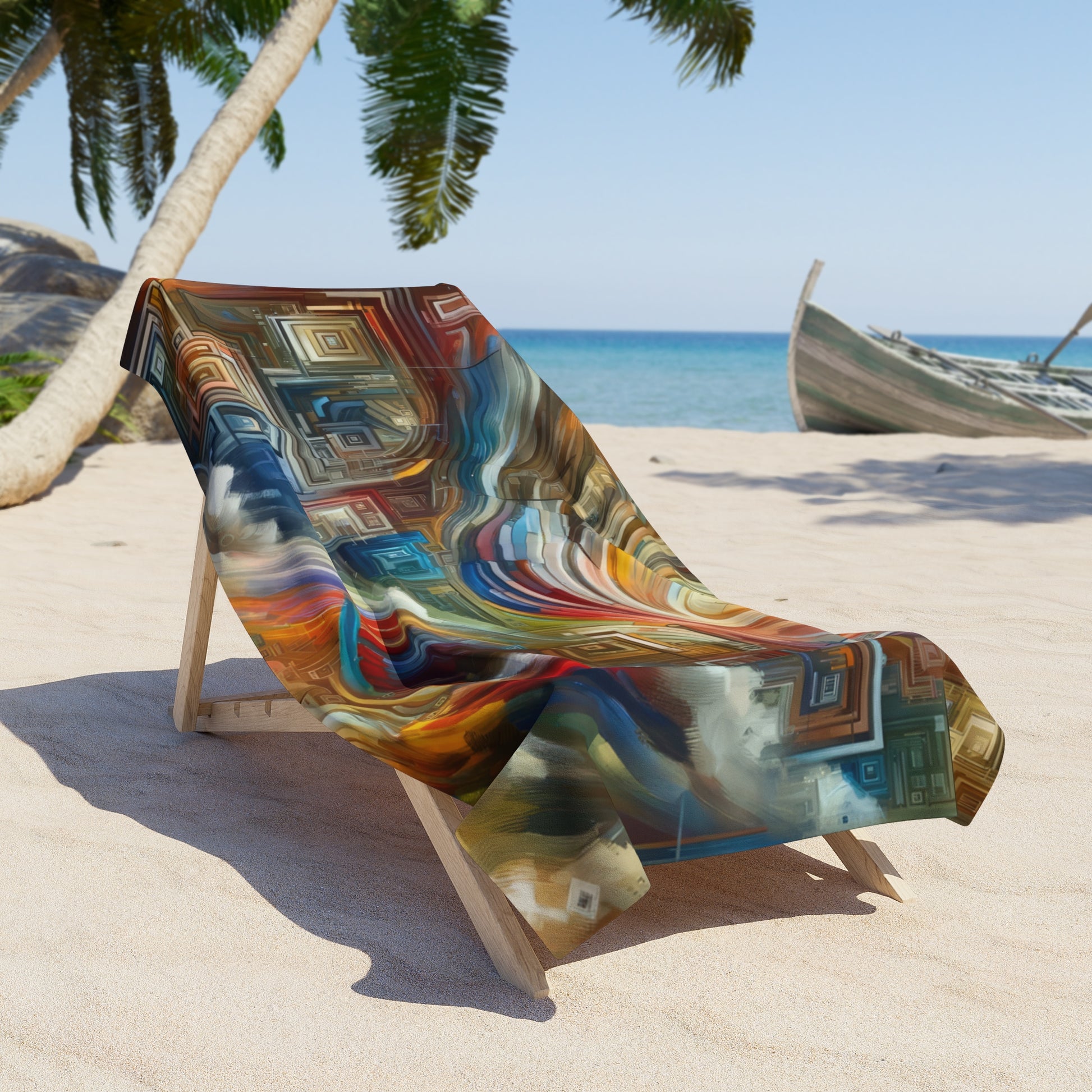 Step onto the beach with style and comfort with our "Woven Progress Tapestry" beach towel. This stunning piece of functional art features a vibrant design that captures the essence of movement and momentum, inviting you to contemplate the interconnectedness of past, present, and future. The bold use of color and form creates a sense of growth and transformation, celebrating the human spirit and our collective journey towards progress.